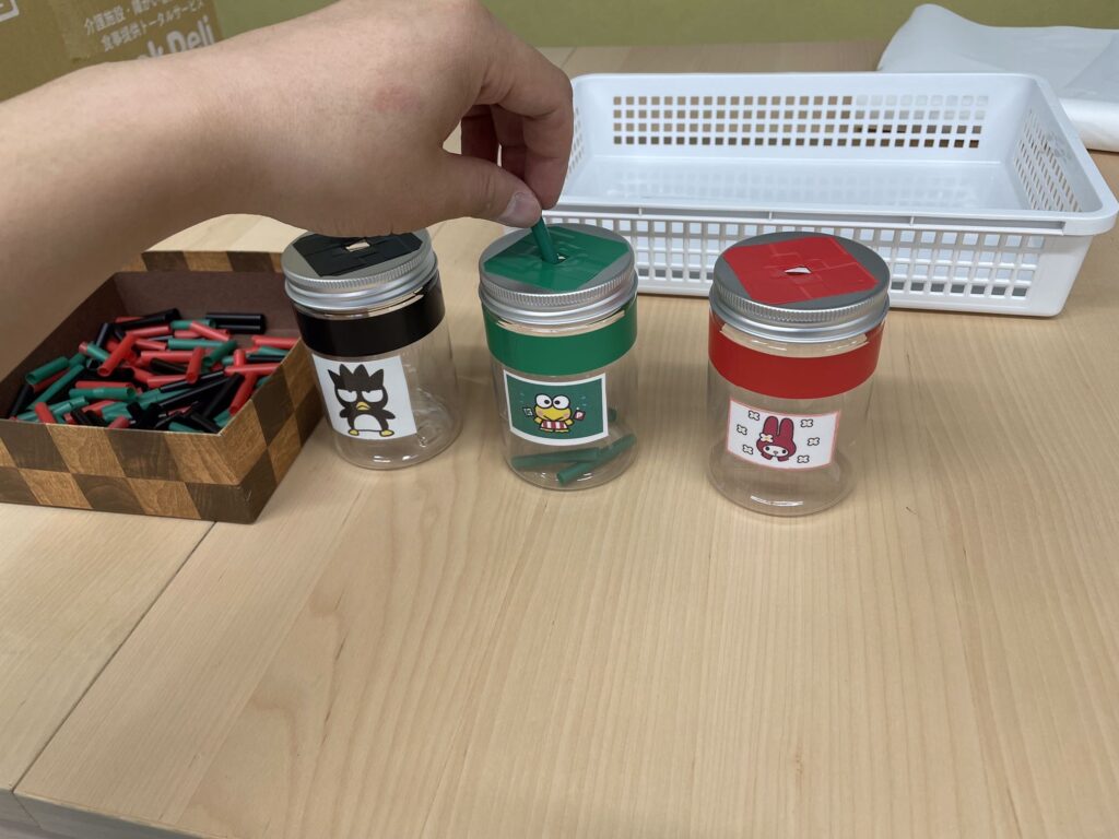 以前スポンジボブが好きな利用者様に作業時間を楽しく過ごしていただくために作ったものです。口に穴が開いているので、そこからごはんを模したボールを入れていきます(食べさせる)🍴