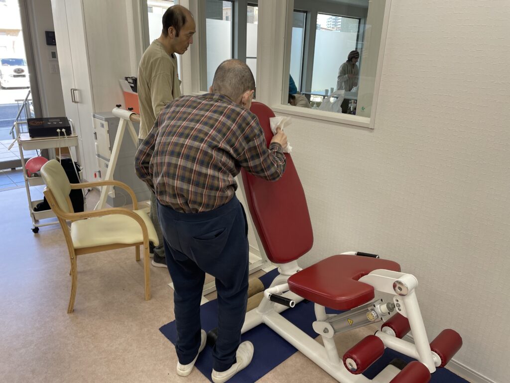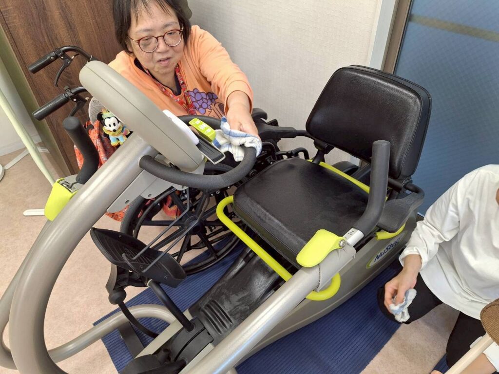 日々の運動で使用する機器もしっかりと拭きます。