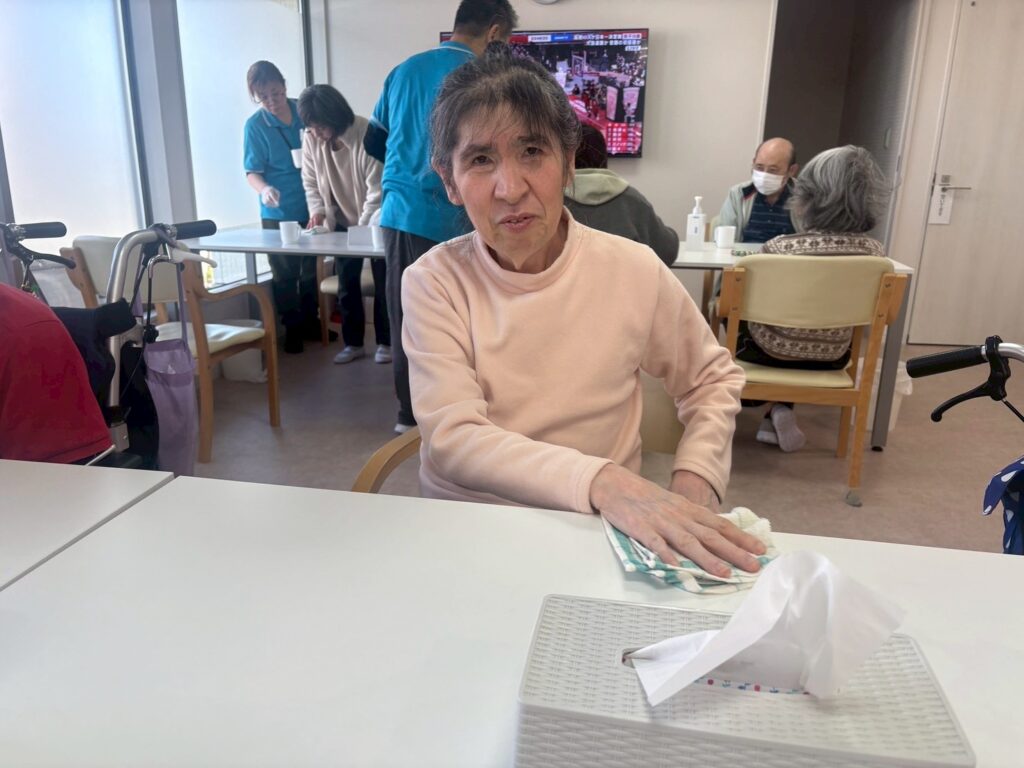 皆様で楽しくお食事やレクをしたテーブルや椅子も綺麗に…