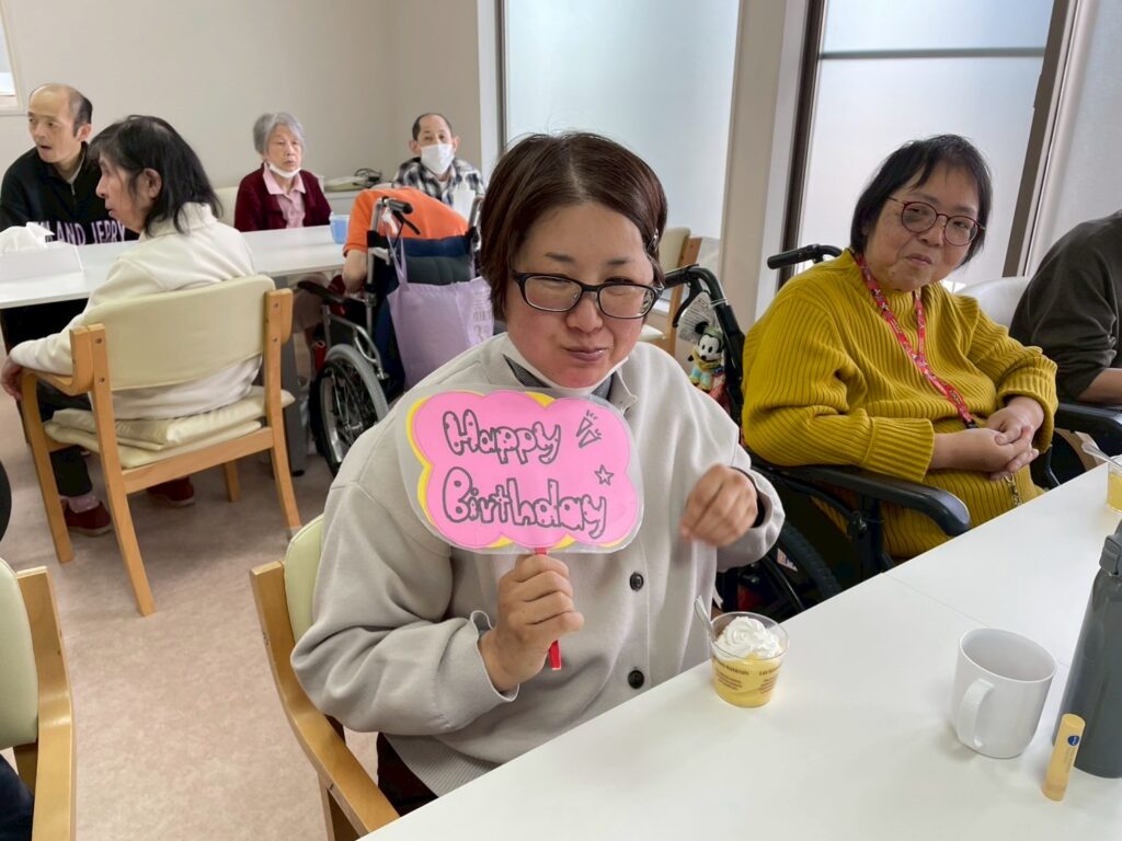 共同生活援助アビリティホーム 共同生活援助アビリティホーム植田 一覧へ 生活介護プラスアビリティ 生活介護プラスアビリティ植田 生活介護プラスアビリティ名東 一覧へ 児童発達支援 / 放課後等デイサービス 児発放デイアビリティキッズ ききょうだいら 児発放デイアビリティキッズ おおもり 一覧へ 老人ホーム紹介センター ブログ 企業概要 求人 ブログ Blog 1月の誕生日会 2026/01/29 プラスアビリティ植田 プリンを入れてトッピングしてみなさんご機嫌に(*^^*) 美味しく頂きました。 1月のお誕生日の方おめでとうございます(≧▽≦)