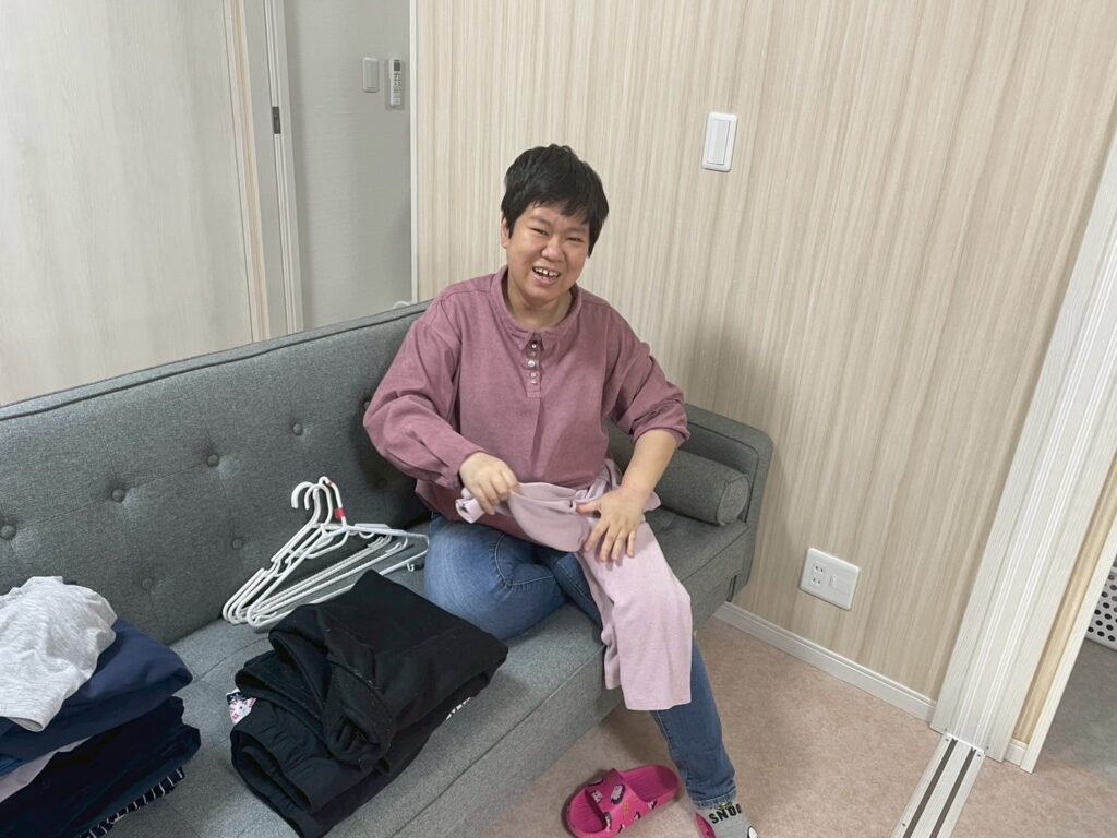 洗濯物畳みを手伝ってくれています。ありがとうございます。