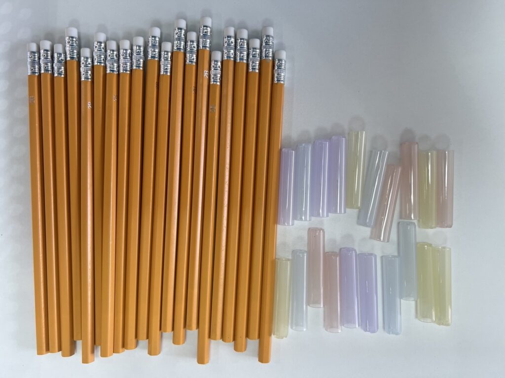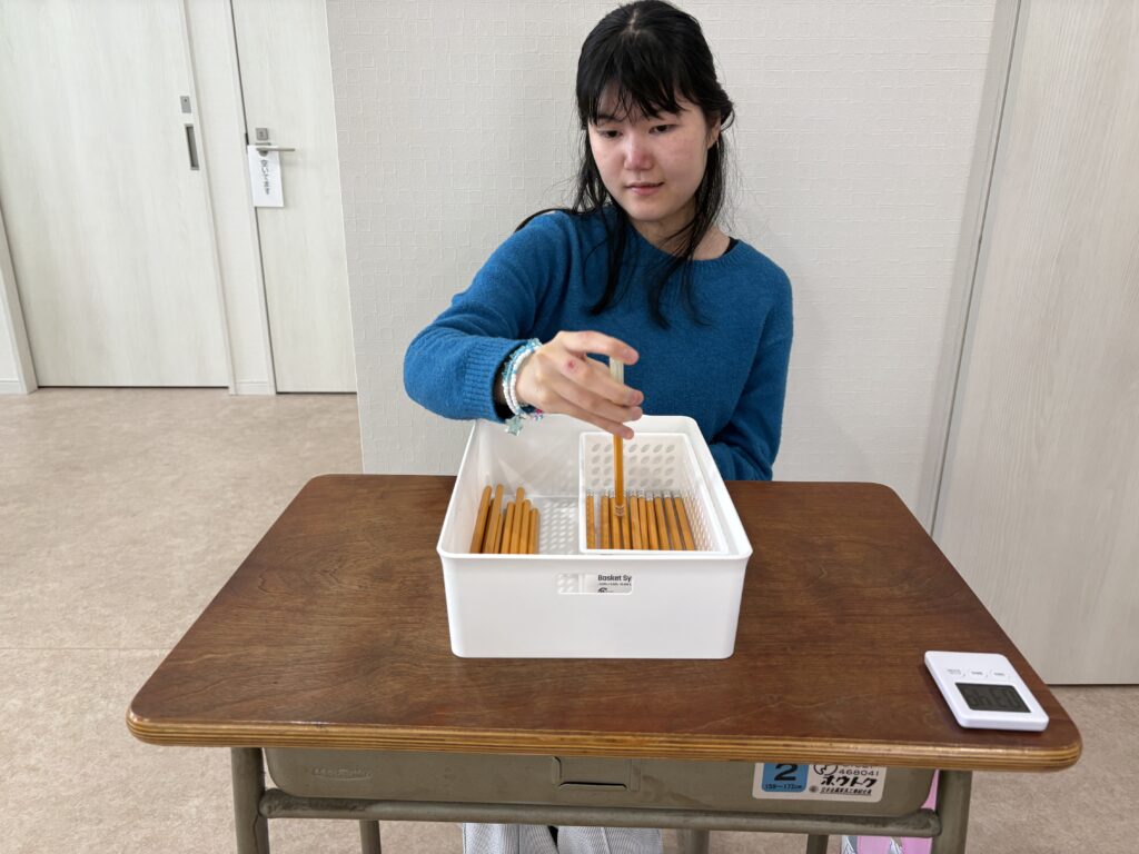鉛筆にキャップを付ける作業です(^^♪