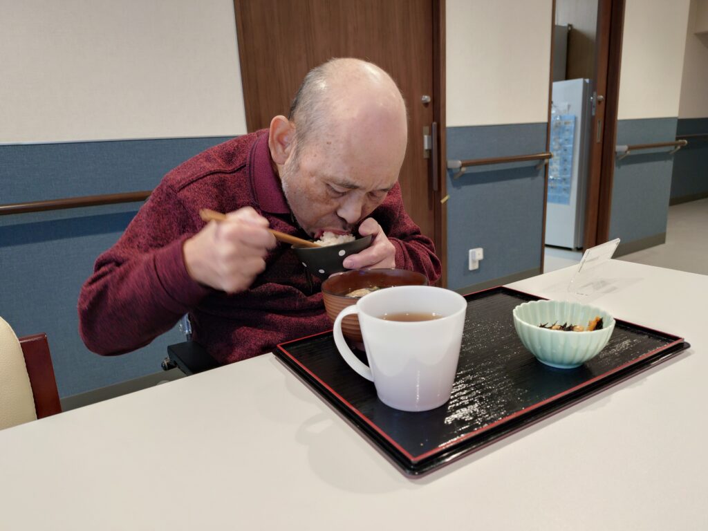 この写真は昼食後のまったりとした時間を過ごす職員と利用者様の様子です。